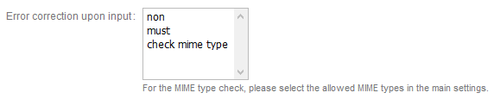 and scroll down to “Error correction during entry”, where you will then select “check MIME type”: